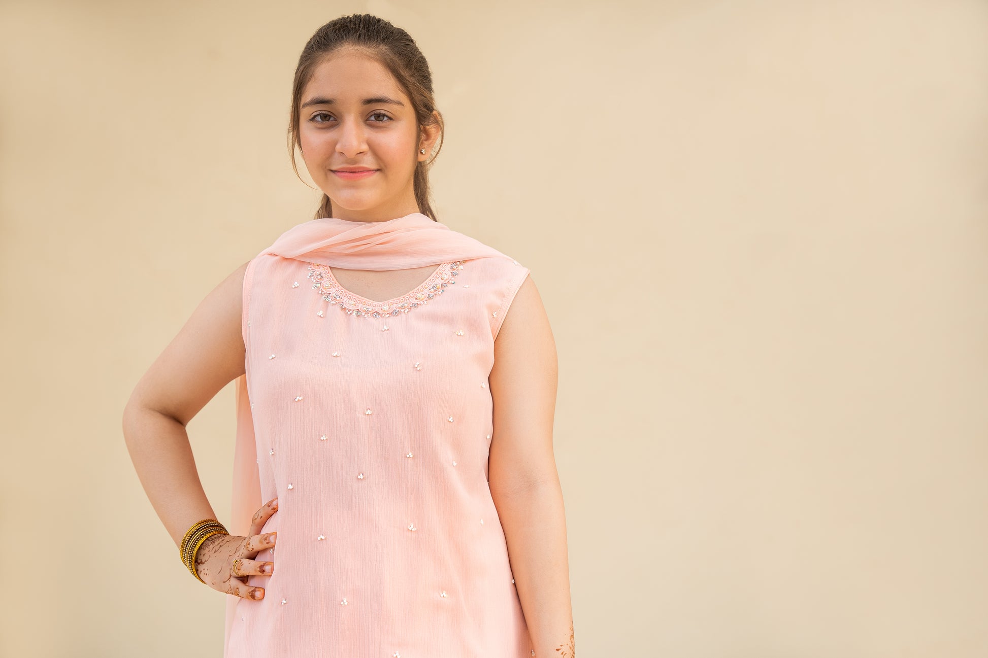 DescriptionSHIRT: Hand embroidered neckline with all over sitra/moti work Lace on hem. |