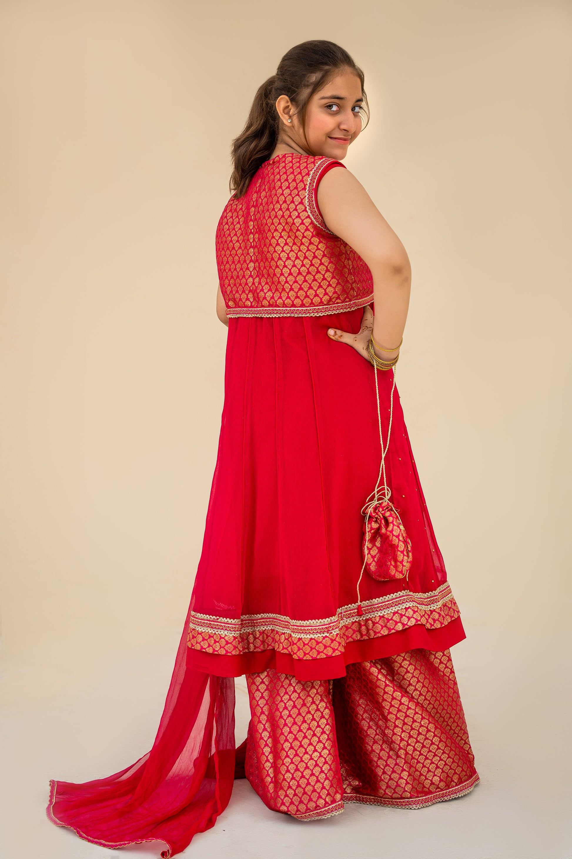 DescriptionSHIRT: Front open, 6-Kali kameez with hand embroidered koti, edges, neckline and hem. |