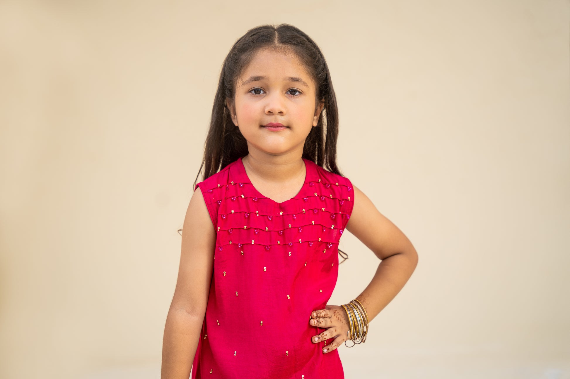 DescriptionSHIRT: Back open Hand embellished kameez with pin tucks on front. |
