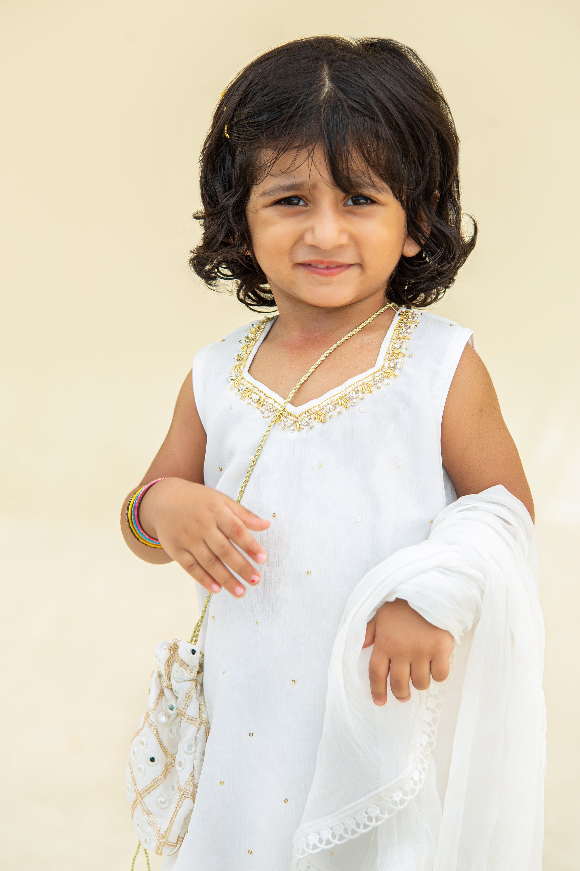 DescriptionSHIRT: Back open, Hand Embroidered V neck neckline, with lace on hem, with all over sitara work. |