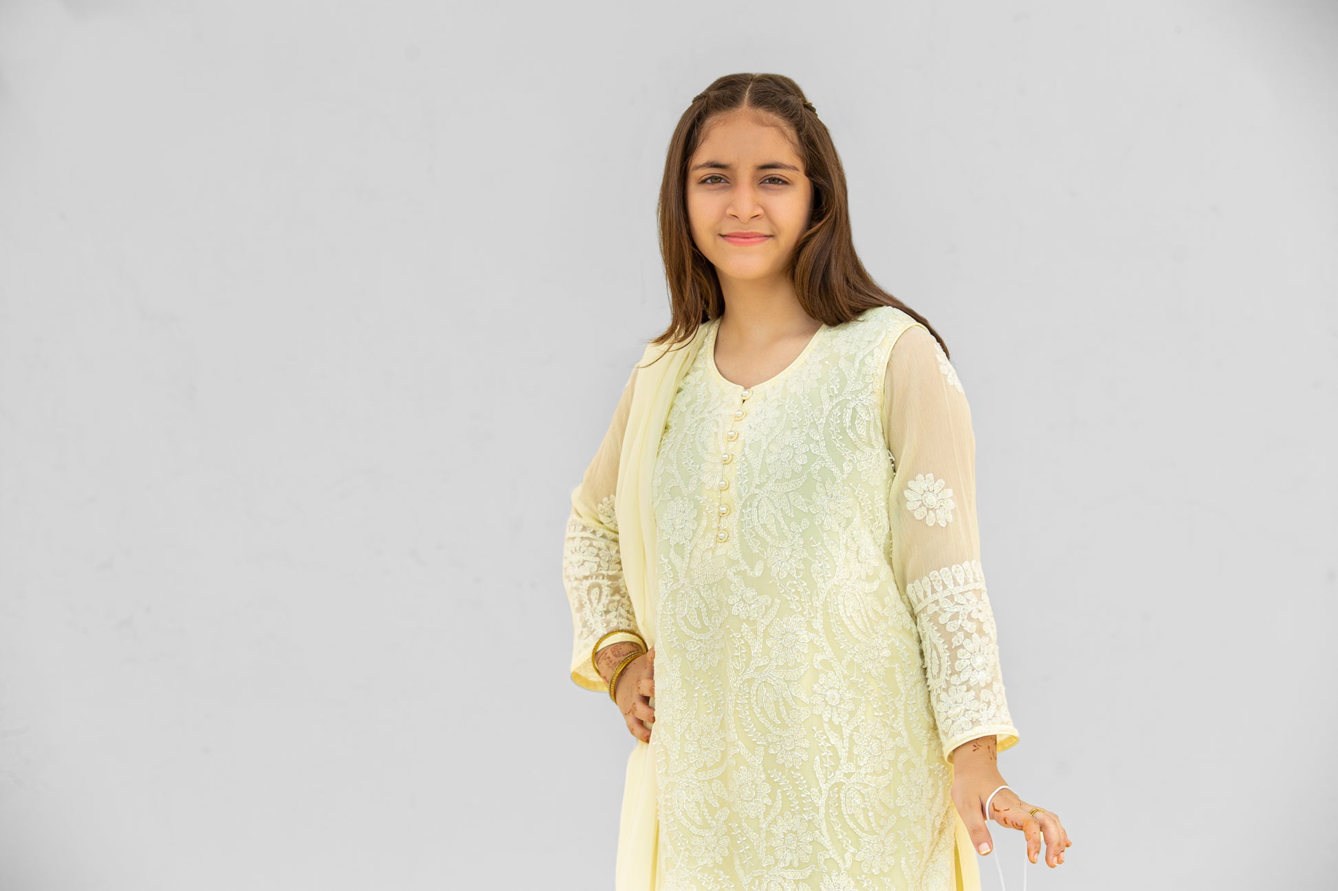 DescriptionSHIRT: Front open goli button with all over Hand Embroidered chicken kari wark. |