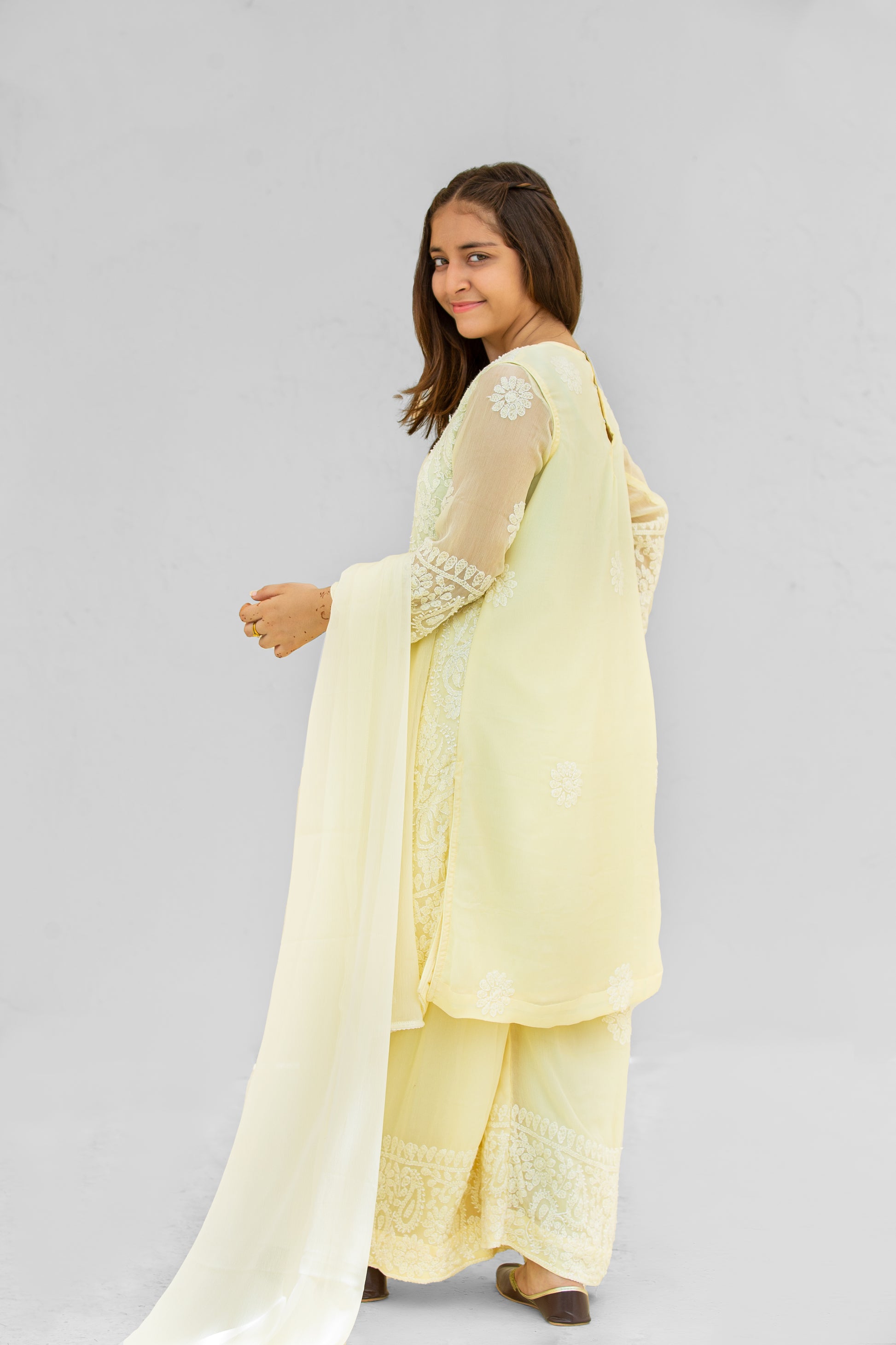 4 - piece Hand Embroidered Kameez Suit with Dupatta and Batwa. G10448