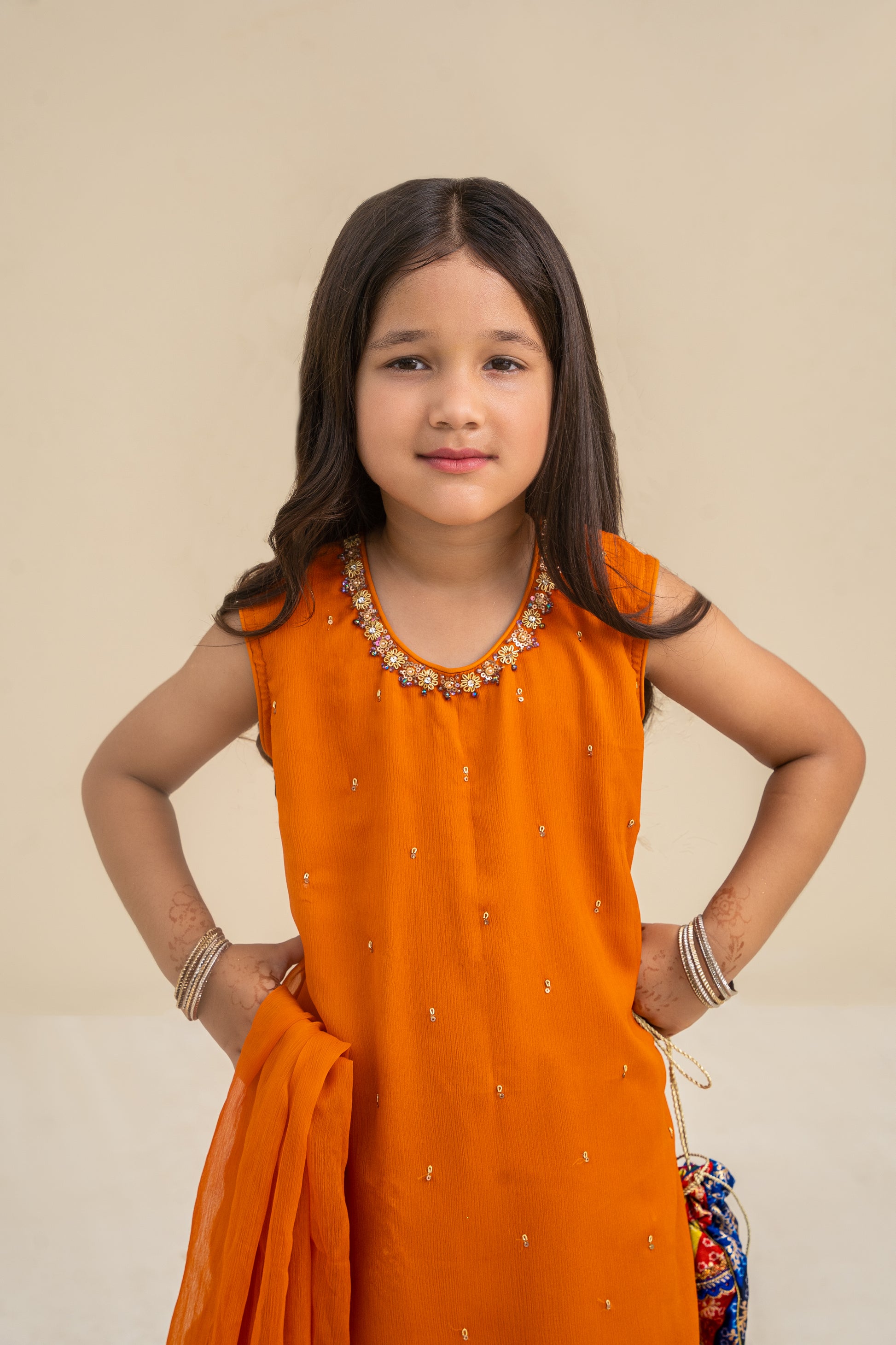 4 - piece Hand Embroidered Sharara Suit with Dupatta and Batwa. G10423