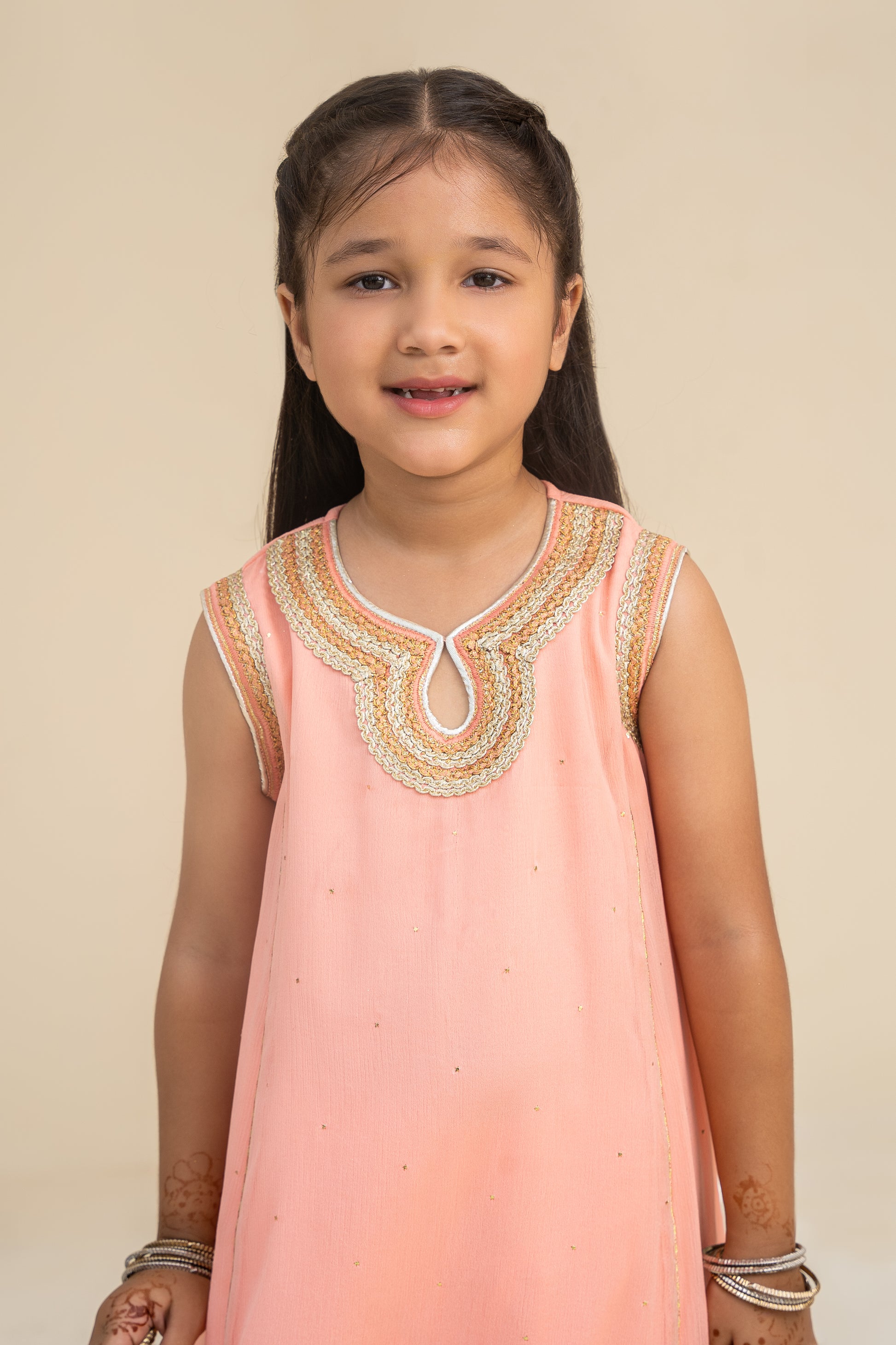 | DUPATTA: Bamber Chiffon, kamdani-work dupatta with lace on both ends. |